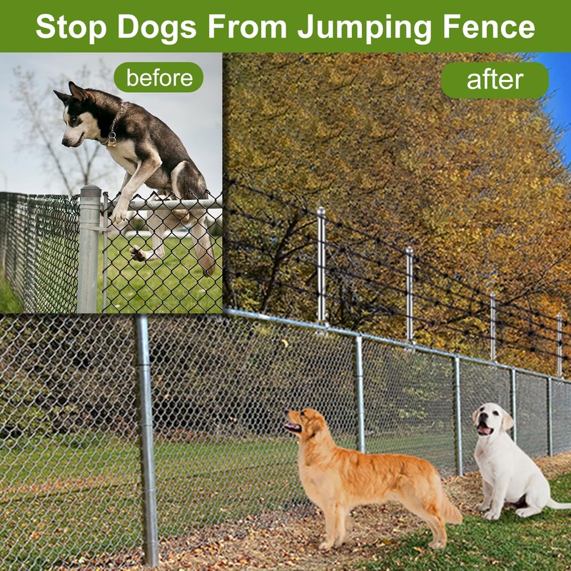 • Link Fence Post Extender with Metal Hooks: each post comes with 4 metal hooks so you can more easily link wire or fencing material (privacy screen, sun shadow or mesh, chain link fence slats) to the posts for more uses; Prevent dogs and other uninvited guests from jumping over the fence and link wire; They can also extend the height of the chain link fence, making it more secure and private