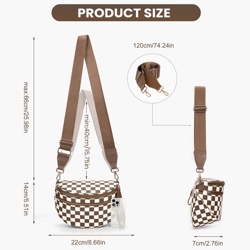 - 【Flexible Use】: The checkered bum bag is equipped with an adjustable wide shoulder strap and can be used as a shoulder bag, crossbody bag or waist bag.