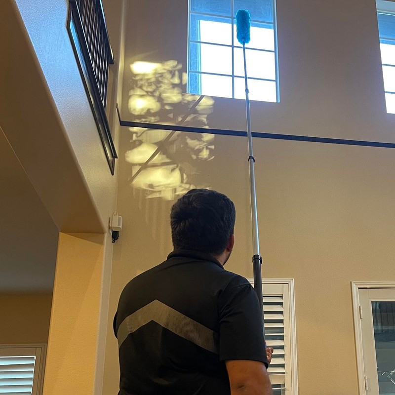 - 5.Multi-purpose use for paint roller, paint brush, squeegee, wasp spray, cobweb duster, ceiling fan duster, feather duster, fruit picker, high ceilings light bulb changer, window washing kit.(Attachments sold separately)