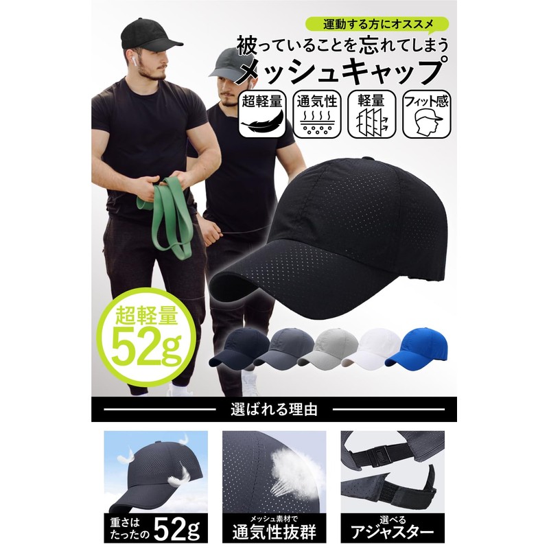 hichago Men's Baseball Cap for Running, Mesh Cap, Secure Fit, Won't Fly Off, Unisex, Ultra Lightweight, Breathable, Quick Drying, Jogging, Walking, Thin Material, UV Protection, gray (light gray)