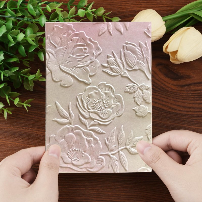 - 【3D Textured Embossing】: Our embossing folders feature a three-dimensional textured design that creates a stunning, beautifully embossed effect on your papercraft projects. Subtle floral and leaf patterns add depth and dimension to your work.
