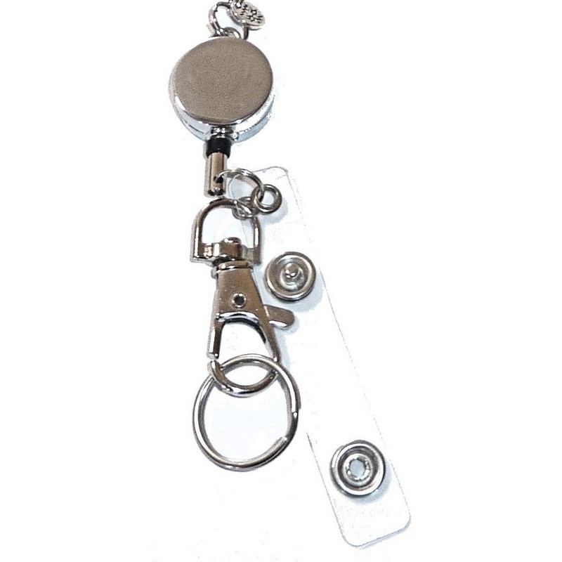 - Retractable Reel Beaded ID Badge Holder - Lanyard is 34 inches long (17 inches from the back of the neck). Reel pulls out an additional 14.5 inches.