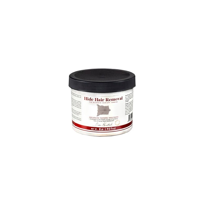 - Streamlined Hair Removal Solution: Developed by Dale Knobloch, Hide Hair Removal is a 2 lb powder that effortlessly removes hair from deer, elk, bison, and similar hides in 1-2 days, preparing them for buckskin tanning in a single step.