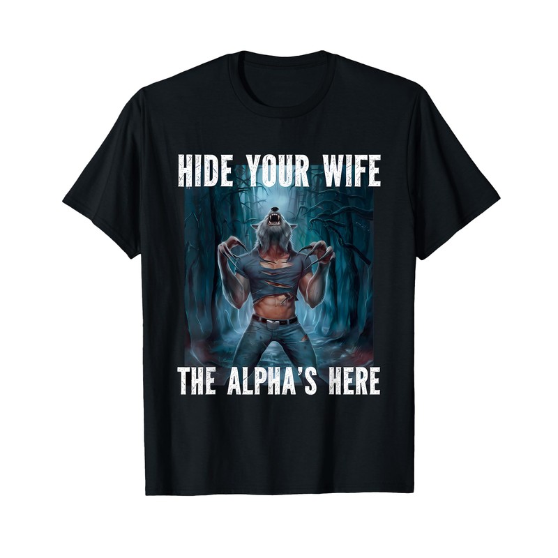 - Hide Your Wife, The Alpha's Here Funny Vintage Werewolf Wolf Ripping Meme Tee Is Perfect For Werewolf Fans, Meme Lovers, And Alpha Enthusiasts! Ideal For Halloween, Parties, Or Casual Wear. Show Off Bold Humor And Retro Style With This Unique Design!