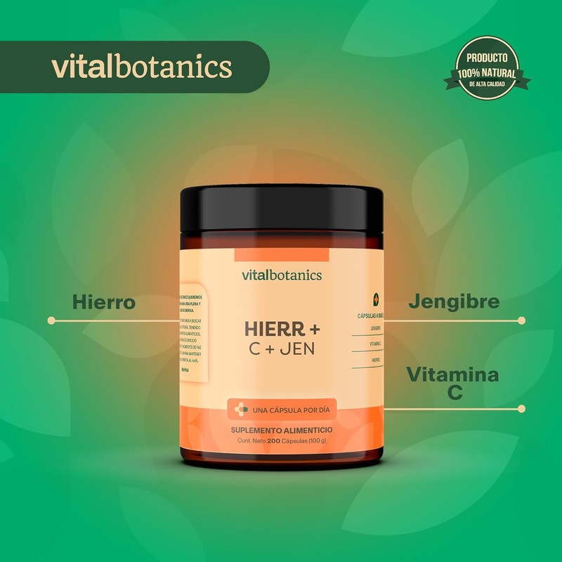 Hierro con Vitamina C. 200 capsulas de 500mg (Más de 6 meses). VitalBotanics....