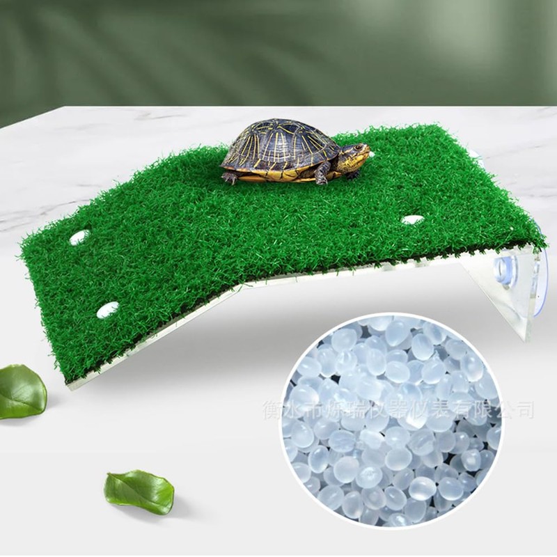 - Lawn tortoise platform:What we use is artificial green turf, which is soft and non-slip, giving the turtle a pristine and comfortable habitat environment and increasing the ornamental value for your tank.
