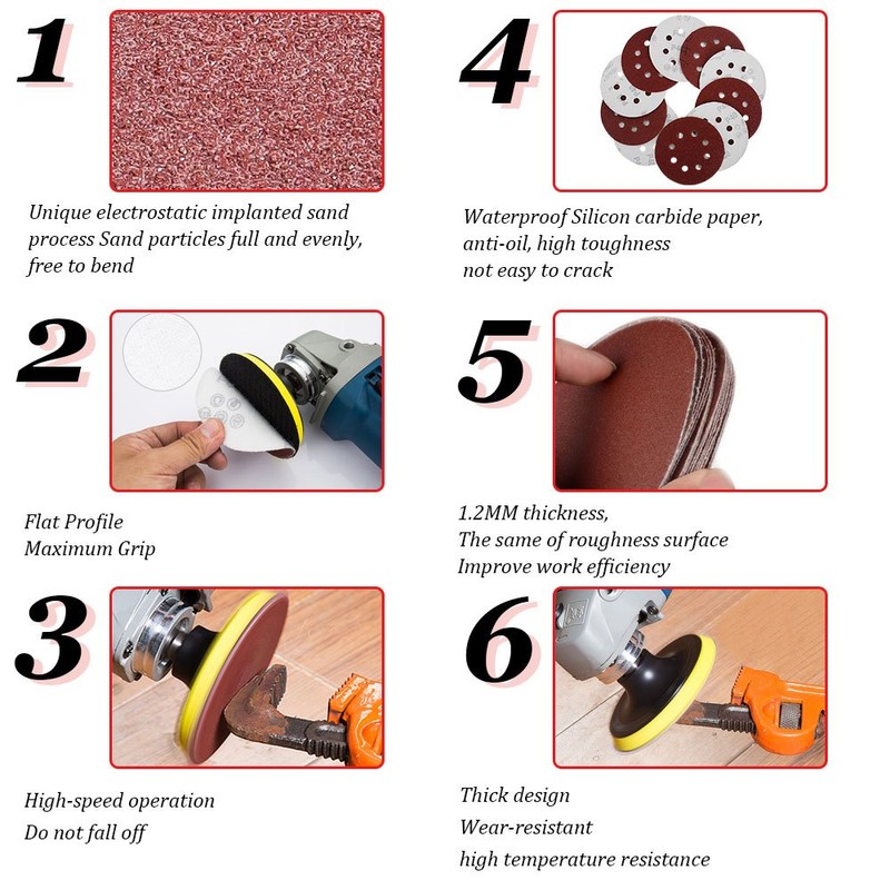 - Sanding discs are made from aluminium oxide abrasive, durable and anti-static. The grit is larger, the polish effect is finer.