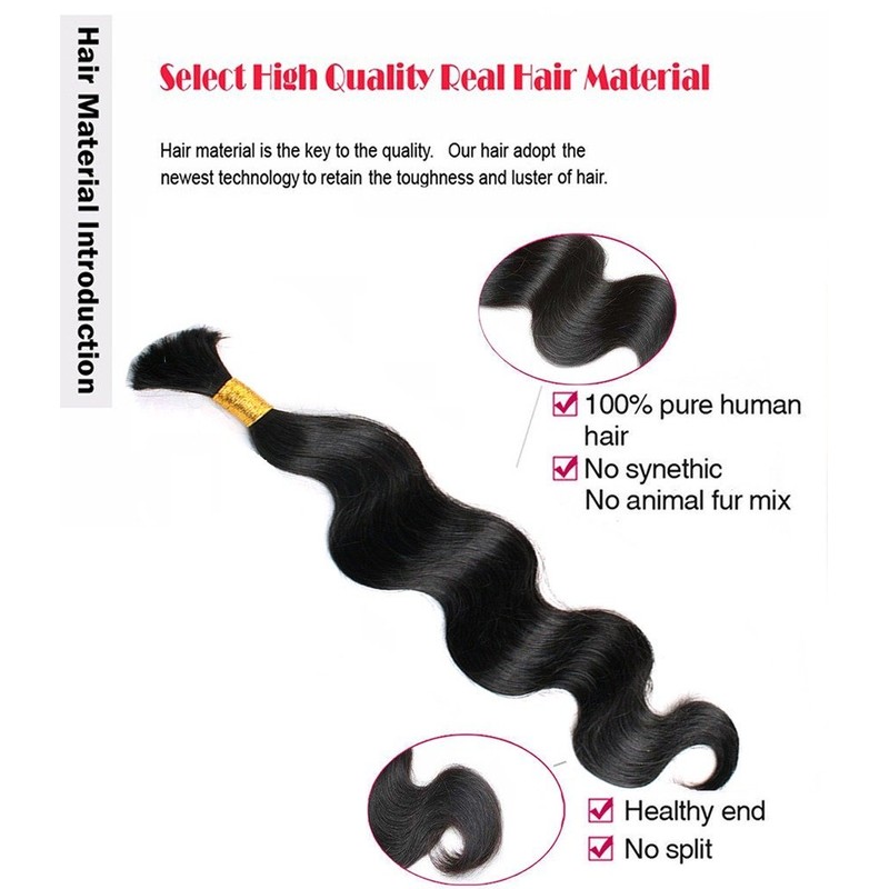 High Grade Bulk Hair for Micro Braiding, Remy Virgin Hair, Dyeable & Bleachable, 2 Bundle Pack, 100G/Bundle Natural Black - 20 Inch