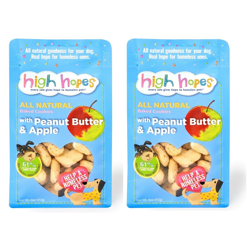 High Hopes - Every Sale Gives Hope to Homeless Pets - Peanut Butter and Apple Baked Cookies, 11 Ounce Bag (Pack of 2), All Natural Dog Treats, Baked Dog Cookies, Dog Snacks