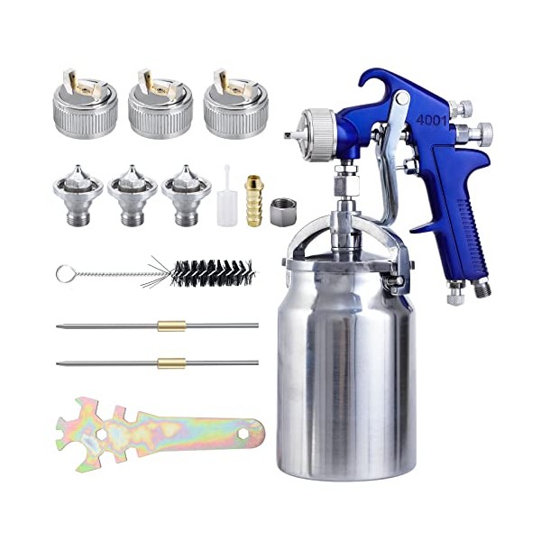 - PACKAGE INCLUDED: 1 x Spray Gun;1 x 1.3mm Nozzle; 1 x 1.7mm Nozzle; 1 x 2.0mm Nozzle; 1 x 1000cc Aluminum Cup(1L); 1 x Wash brush; 1 x Adjustment Wrench;2 x replacement needles;1 x filter.