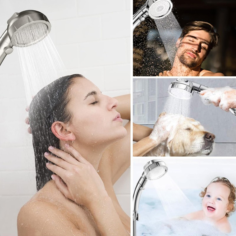 3 Jet Types The handheld shower head is equipped with the latest technology, 3 functions bathroom shower head will present soaking rainfall, invigorating massage and powerful jet modes.
