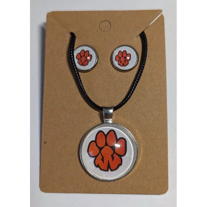 Whether you're heading to a game or just want to show off your love for your school, this set is the perfect accessory. It's ideal for those who want to support their school without having to wear a traditional jersey or t-shirt. So why wait? Add this High School Earrings and Necklace Set to your collection today!