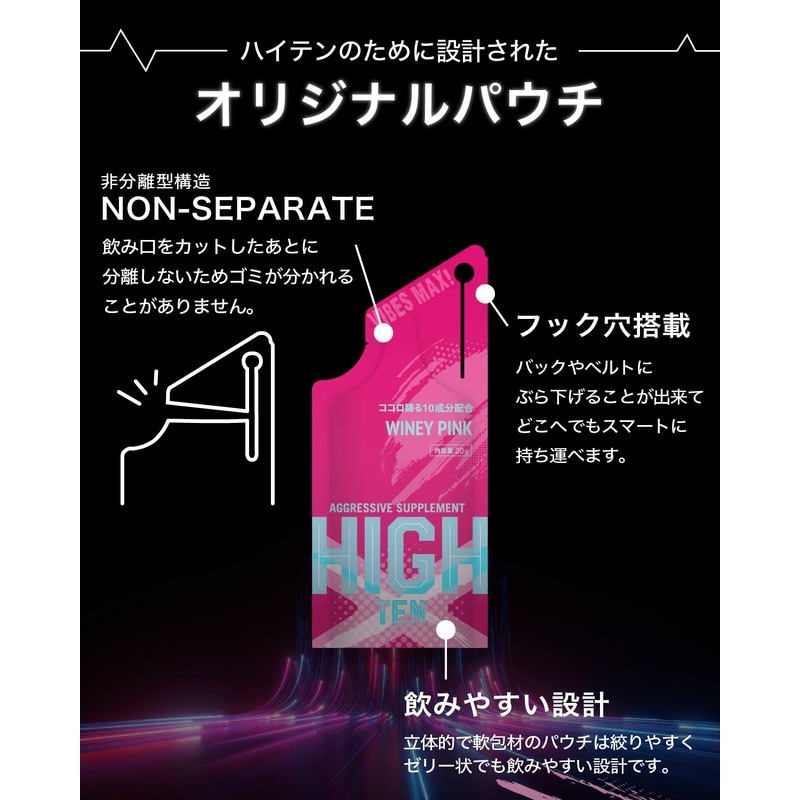エナジーゼリー [HIGH-TEN ハイテン] エネルギーゼリーカフェインフリー ムクナ ドーパミン やる気 サプリ WINEY PINK ~グレープフレーバー~ (5本入り)