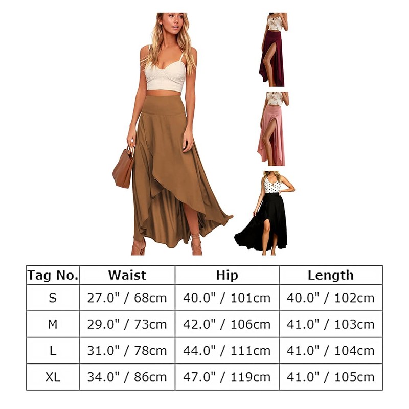 Casual slit wrap asymmetrical elastic high waist maxi draped skirt, Perfect to match with any tops, shirts, crop tops, tank tops, jackets to create a stylish and graceful look.