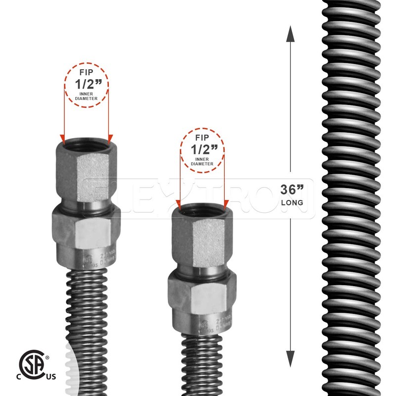 Highcraft GUHD-TT12-36C Gas Line Hose 5/8" O.D. x 36" Length with 1/2" FIP Fitting, Uncoated Stainless Steel Flexible Connector, 36 Inch