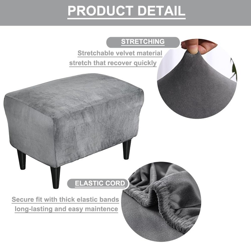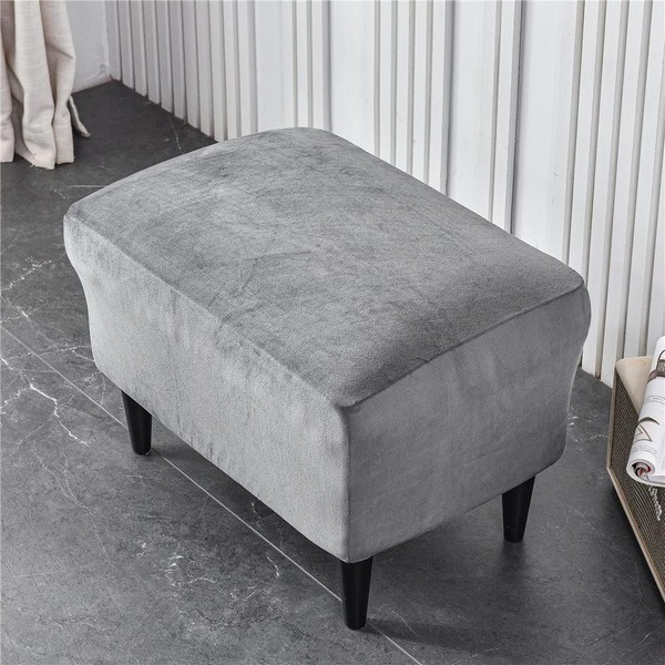 Highdi Ottoman Protective Cover Stool Cover, Velvet Stool Cover for Footstool, Rectangular, Grey Stretch Cover, Ottoman Cover, Stool, Protector, Washable Stool Cover