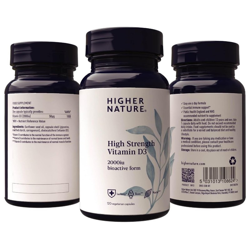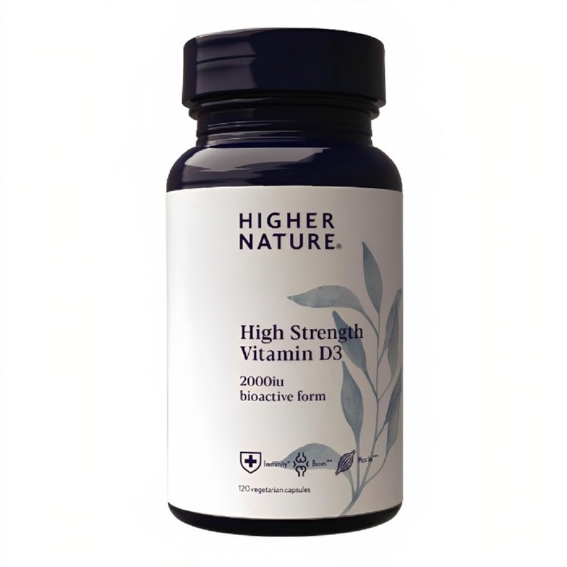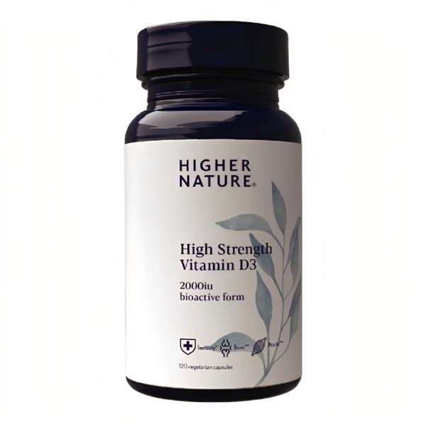 HIGHER NATURE Higher Nature - High Strength - Vitamin D3 2000iu - Immune System Support - Bone & Muscle Support - Vegetarian Friendly - 120 Capsules