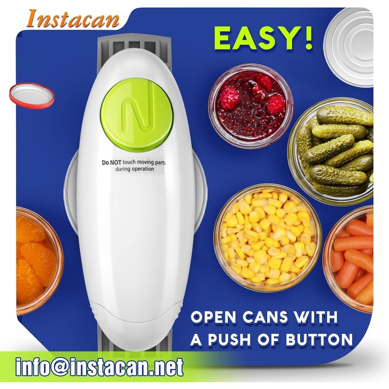 - 𝗘𝗔𝗦𝗬 𝗧𝗢 𝗨𝗦𝗘 - No complicated steps and easy to use. Press the button and wait for 360° automatic rotation to open jars then auto shut off after resetting jaws. INSTACAN, YOUR MUST-HAVE KITCHEN APPLIANCES