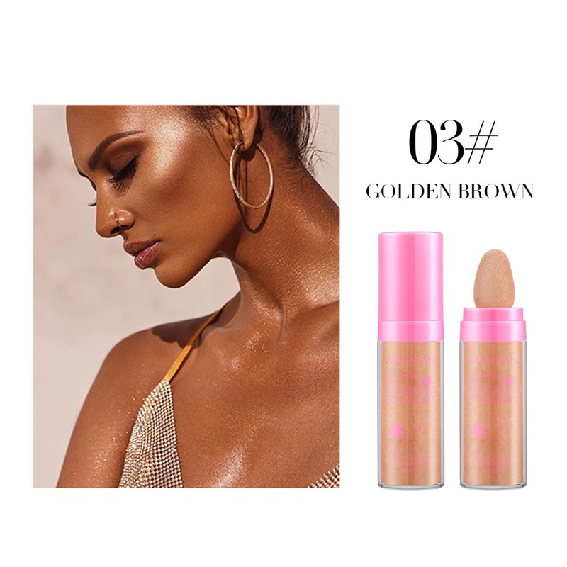 Highlight Patting Powder Highlighter Puder Stick Glitzer Patting Puder für Gesicht und Körper Highlight Brighten Contouring Makeup #03 Goldbraun