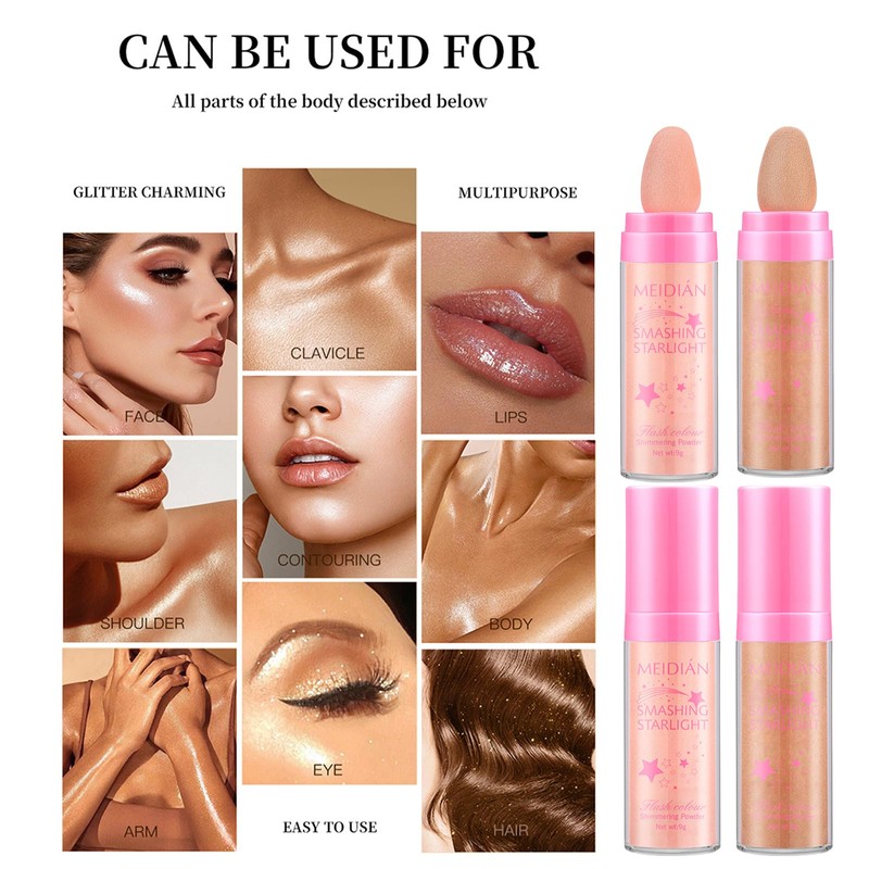 - √Ein Ganzkörperpuder. Einfaches Färben, großartiger Schimmer. Einfache Anwendung ohne andere Hilfsmittel. Nicht klebrig, leicht zu reinigen.
