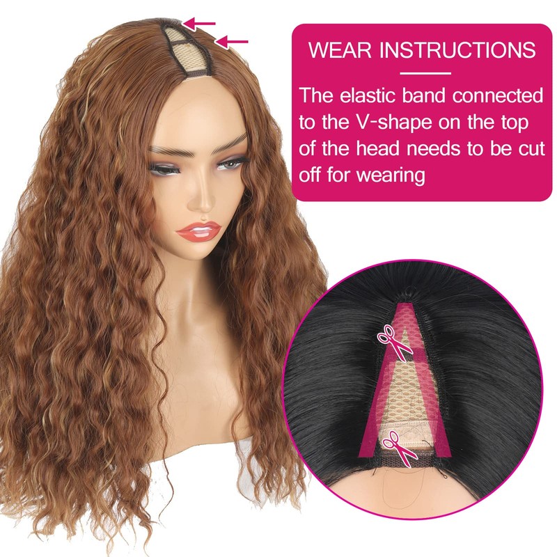 - 【Ajustable cap】Curly v part wig features a comfortable and breathable mesh cap,V-shape wigs have 5 clips on top and 3 combs on back, left, right. grips and holds hair better. easy to install and fix the wig.