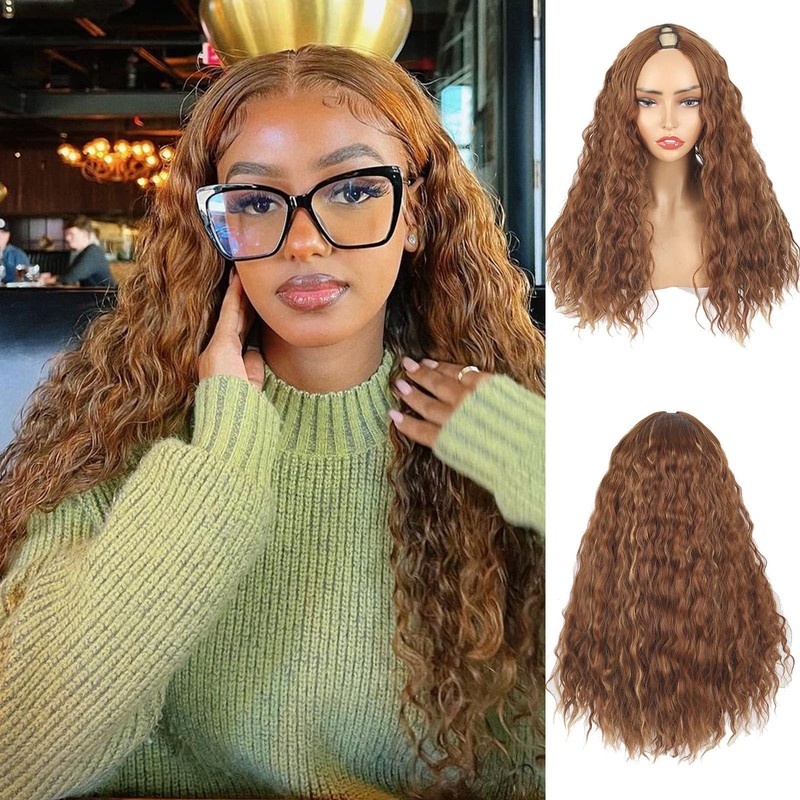 - 【New V part Design】Matthia's latest design kinky curly v part wig with highlight honey blonde wig, no sew-in, no glue, no leave-out.Show up your real scalp and natural hairline also give your scalp a rest and still have great hairstyles.