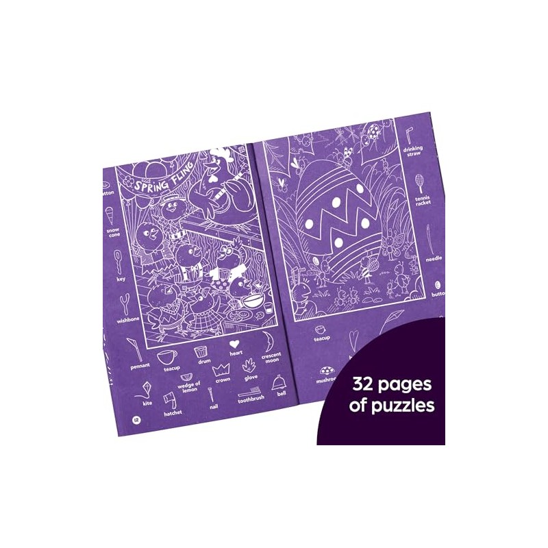 With over 150,000 copies sold, Easter Hidden Pictures Puzzles to Highlight is a perfect addition to any Easter basket! This Easter-themed collection of Hidden Pictures puzzles is inverted for a unique puzzling experience. Kids can use the included yellow highlighter to create fluorescent scenes and find hundreds of Easter hidden objects.This Easter book for kids combines the fun of coloring with highlighters and the enduring popularity of intricate Hidden Pictures puzzles. With images like bunnies, eggs, and flowers, create a fun and engaging family Easter activity. Make eye-popping artwork on purple paper as you find the hidden objects to color with your neon highlighter.For over 75 years, Highlights has inspired children to become Curious, Creative, Caring and Confident individuals. With products that encourage thinking, creativity and self-expression, Highlights helps kids build essential skills, all while having fun.