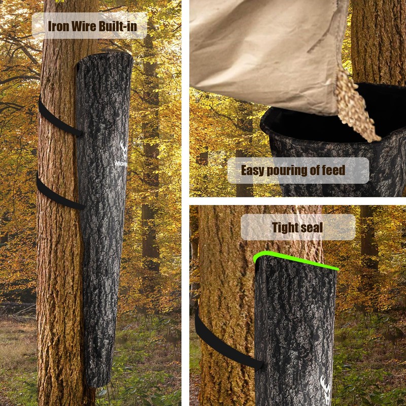- ▶ HIGH CAPACITY - With a large capacity, the gravity bag feeder can hold up to 100 Pounds of corn, bran, protein pellets, powder attractants or a combination. Not only meets the food requirements of wildlife but also reduces the frequency of food refills, saving you time and effort