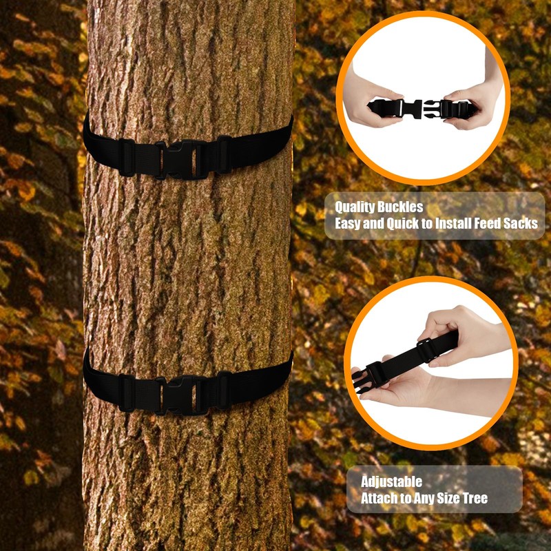 - ▶ QUICK & EASY INSTALLATION - Its simple installation and operation make the bag feeder an ideal choice for outdoor enthusiasts, simply loop the integrated straps around a tree trunk and secure it with the heavy-duty buckle