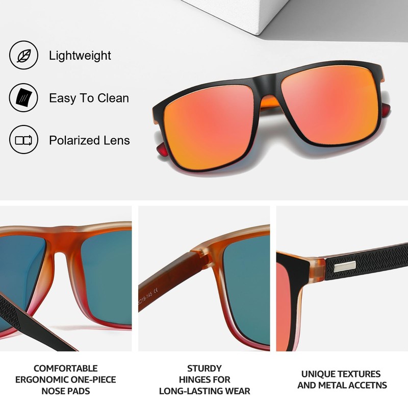 - POLARIZED LENSES & UV PROTECTION: Premium polarized lenses reduce glare from reflective surfaces, enhancing clarity and comfort in bright conditions. They also block harmful UV rays to protect your eyes during outdoor activities
