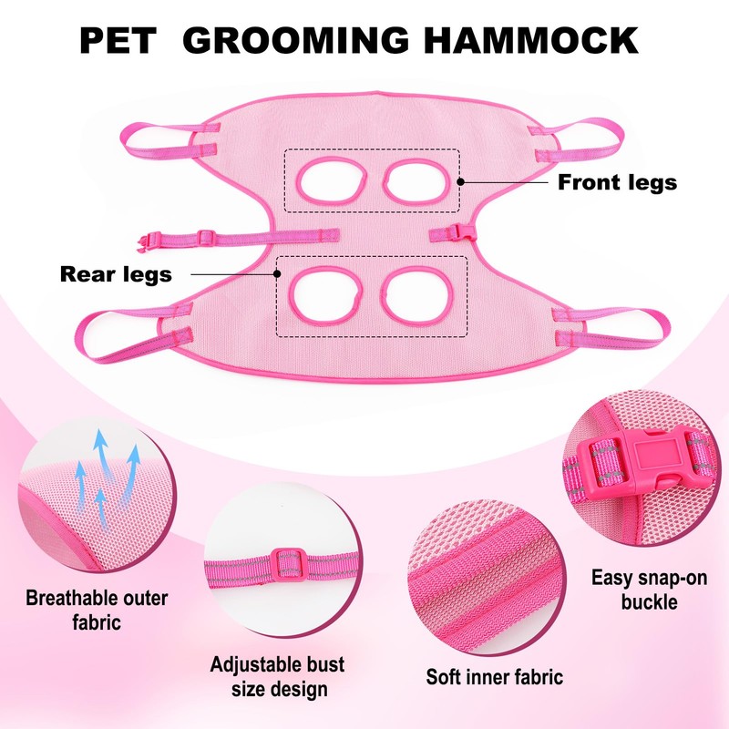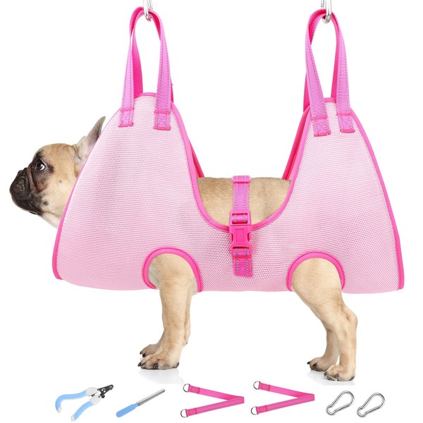 HIGO Dog Grooming Hammock - Breathable Pet Grooming Set for Cats& Dogs, Dog Sling for Grooming Cat Grooming Harness Restraint Bag with Nail Clippers& Nail File (Pink, S)