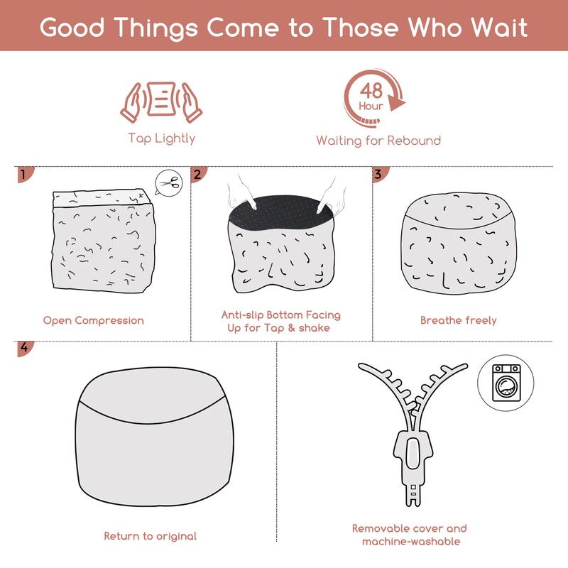 - 【REMOVABLE DESIGN】- For convenience and ease of use, this pouf ottoman comes stuffed with memory foam chunk pouf filler. Meanwhile, the cover can be easily set with the large round zipper on the bottom after cleaning.