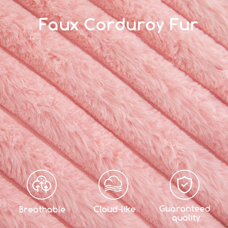 HIGOGOGO Round Stuffed Pouf Ottoman, Stripe Faux Fur Poufs with Foam Chunk Filling, Furry and Fluffy Pouf Foot Stool Storage Ottoman, 20 X 15 Floor Poufs Foot Rest for Living Room, Pink