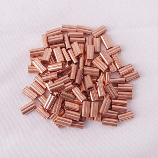 HIGOOD 100 Piece Plain Copper Duplex Oval Crimping Sleeve Set for 3/64" Diameter Wire Rope (Pack of 100)