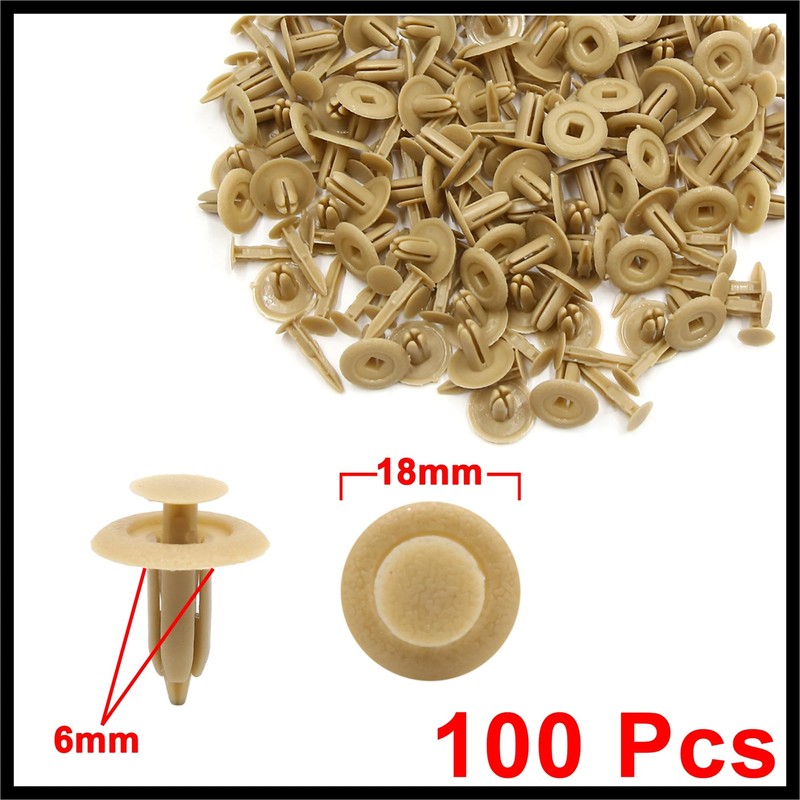 - Convenient: Package Content: 100(+/-2%) x Plastic Rivets; Fit Hole Size: 6mm / 0.24" (D); Head Diameter(max.): 18mm / 0.71"
