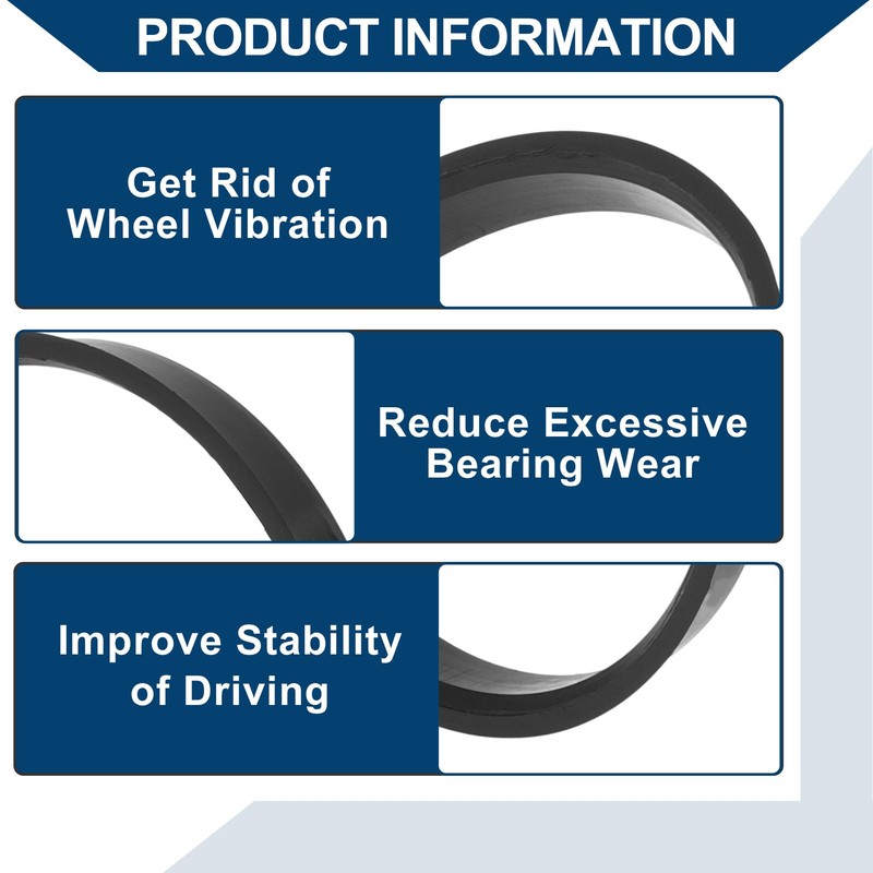 - Performance:Wheel Centerbore Hubrings fill the gap between the vehicle wheel hub and the wheel center hole eliminate vibrations caused by the wheel's not centering firmly onto your vehicle's hub, reduce excessive bearing wear and the noise generated by wheel bolts during driving.