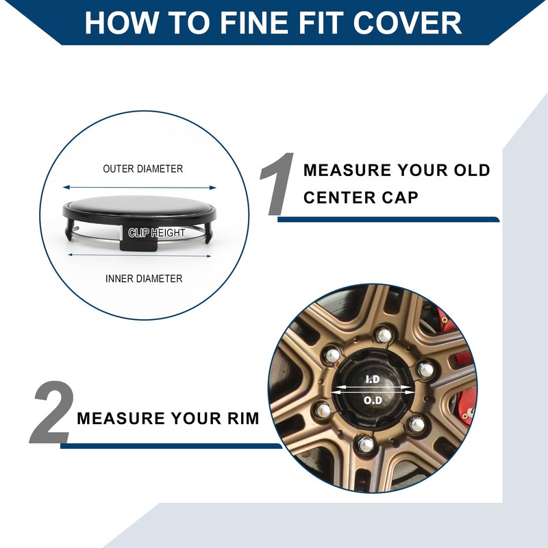 - Installation Guide:Clean the wheel hub surface before installation. Align the center cap with the hub and press it firmly into place.