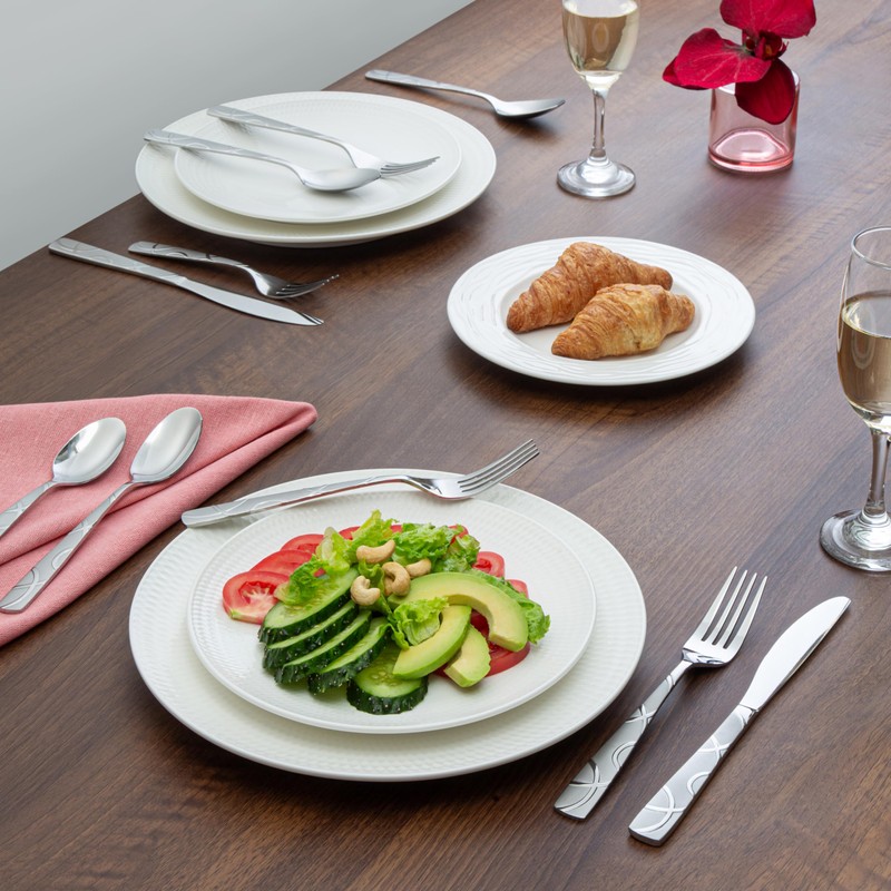 Made of high quality 18/0 stainless steel, this frosted stainless steel silverware has excellent corrosion resistance and exceptional durability, ensuring that the cutting tool is always sharp and easy to cut, spoon in the use of the process of stable non-bending, fork tip will not be used and easily deformed, durable to maintain its original shape. Its design concept is deeply rooted in the classic aesthetics, using matte material treatment, further enhance its low-key and noble temperament, reduce the glare caused by light reflection, more highlight its texture and taste. Not only give your table unique outstanding charm, more eye-catching, but also with simple but not lose the impact of the visual effect for the dining experience to add artistic enjoyment. Inspired by the elegance of minimalism, this collection of stainless steel silverware can be adapted to a variety of environments, from simple modern to traditional elegance. In addition, this silver also pays special attention to the practicality and the convenience of maintenance. No complicated maintenance process, just easily put into the dishwasher to clean, you can let its recovery, bright as new. This easy-to-clean and easy-to-maintain feature makes this high-quality stainless steel silverware kit ideal for every home.