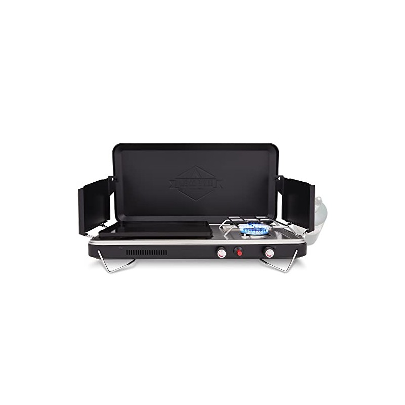- COOK ANYTHING IN THE GREAT OUTDOORS | Powerful Propane-Powered 2-in-1 Grill Features a 10,000 BTU Single Burner Cooktop & 3,000 BTU Griddle for Amazing Outdoor Cooking Convenience | Perfect for Preparing Steaks, Burgers, Eggs, Bacon, Sausage, Pancakes, Coffee, Soup & Other Meals While Camping & Beyond