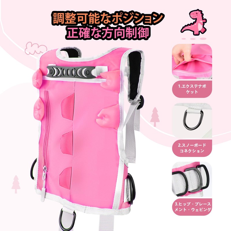 [Hikeen] Kids Ski Harness Ski Snowboard Harness for Kids Safety Beginner Dinosaur Shaped Adjustable Leash with Metal Buckle (Pink)