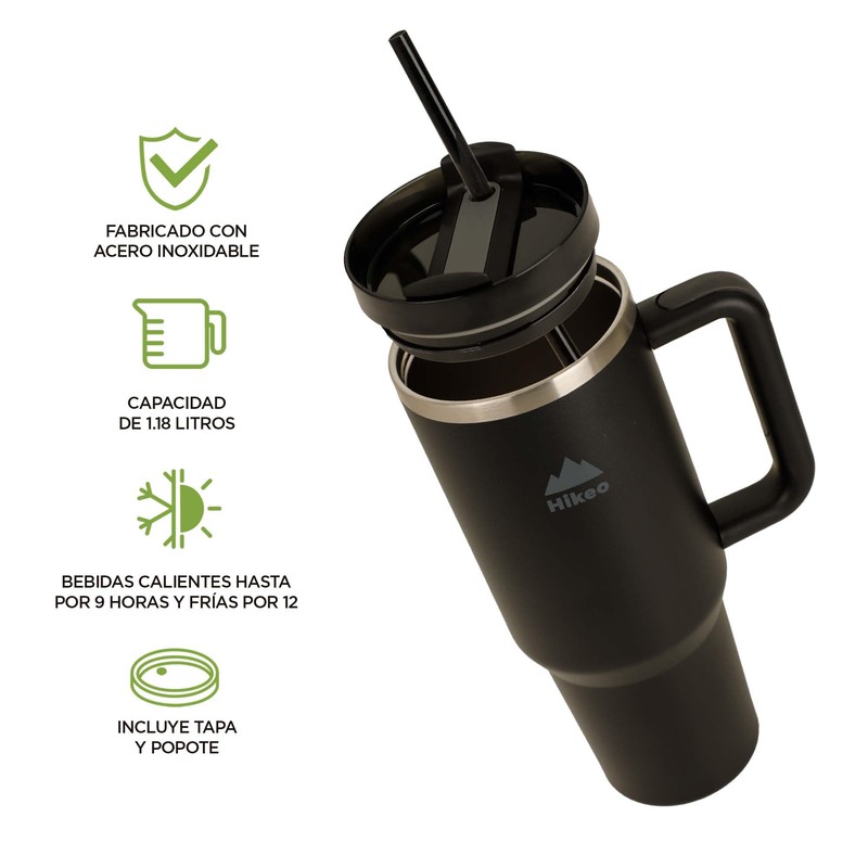 ¡EL TERMO MÁS VERSÁTIL Y MULTIFUNCIONAL, MANTIENE LAS BEBIDAS A LA TEMPERATURA PERFECTA DURANTE HORAS! Este vaso de acero inoxidable con tapa y popote te seguirá a todas partes, permitiéndote saborear tus bebidas favoritas y manteniéndolas a la temperatura ideal durante tus salidas: ya sea caminando, yendo a la escuela, al trabajo o en tus viajes en carro. Dale un toque moderno a tu estilo de vida con nuestro termo de viaje de 1.2 litros.