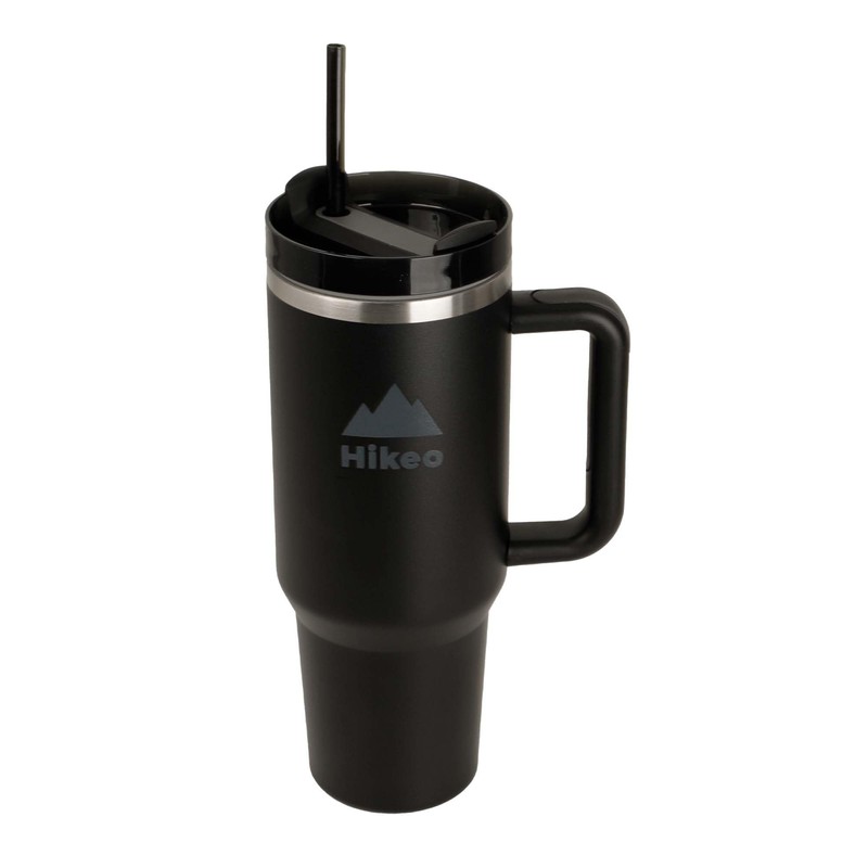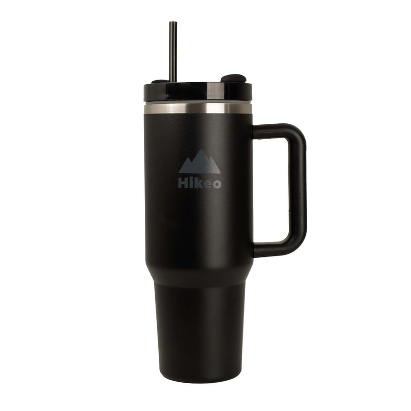 HIKEO Termo para Agua y Café de Viaje 1.2 L de Acero Inoxidable con Doble Pared Térmica, Tapa Antiderrames y Popote, Mantiene Bebidas Calientes Hasta 9 Horas y Frías 12 Horas, Taza con Agarradera