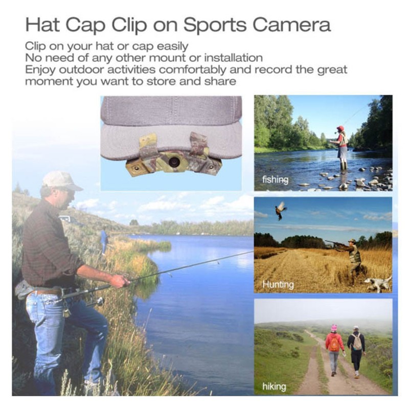 Hiking Hat Clip On Camera HD 1080P Recordings Sports Action Camera Water Proof with 2 LED Emergency Lights Camera
