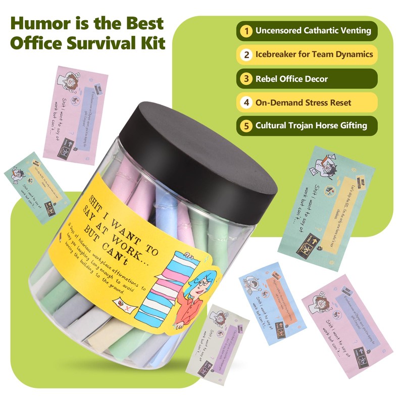 - Office Humor Gift: Stress Relief with a Rebellious Twist: Unleash 60 uncensored, laugh-out-loud affirmations, Funny Team Office Gifts with a Twist: Each quote is rolled and rubber-banded—unwrapping them feels like cracking a inside joke with your desk buddy!