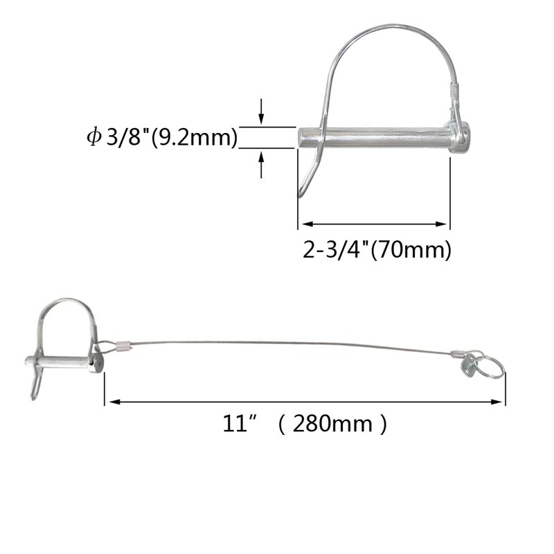 - Versatile. This trailer pin is 3/8" (9.2mm) in diameter and 2-3/4" (70mm) long, making it versatile enough to fit a variety of trailers and other equipment. It can also be used on trailer jack wheels, pivot hooks and more