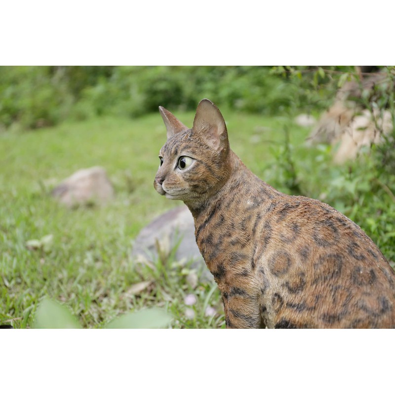 This majestic bengal cat's eyes will captivate your attention. Treat yourself, or give as a gift to any cat lover, as it's sure to please any and all! Made of polyresin, this can be used indoors and outdoors.