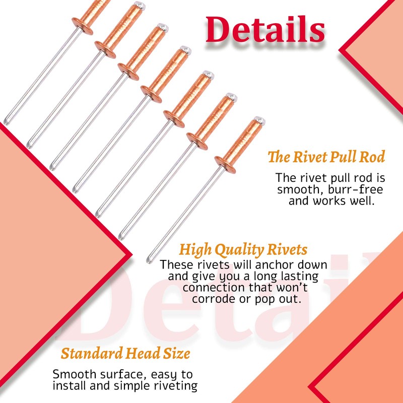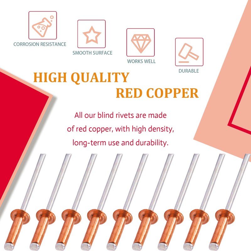 - GQUALITY MATERIALMade of quality red copper material, which is of anti corrosion property. Copper rivet head and alloy steel rivet core, easy to pull out the rivet core.