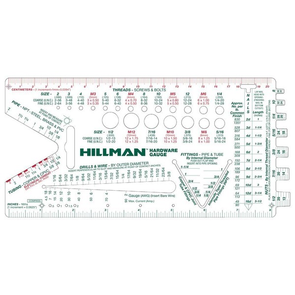 • Dimensions: pipe, wood, nails, nuts, screws (small screws, bolts), drill, wire, plumbing, hardware