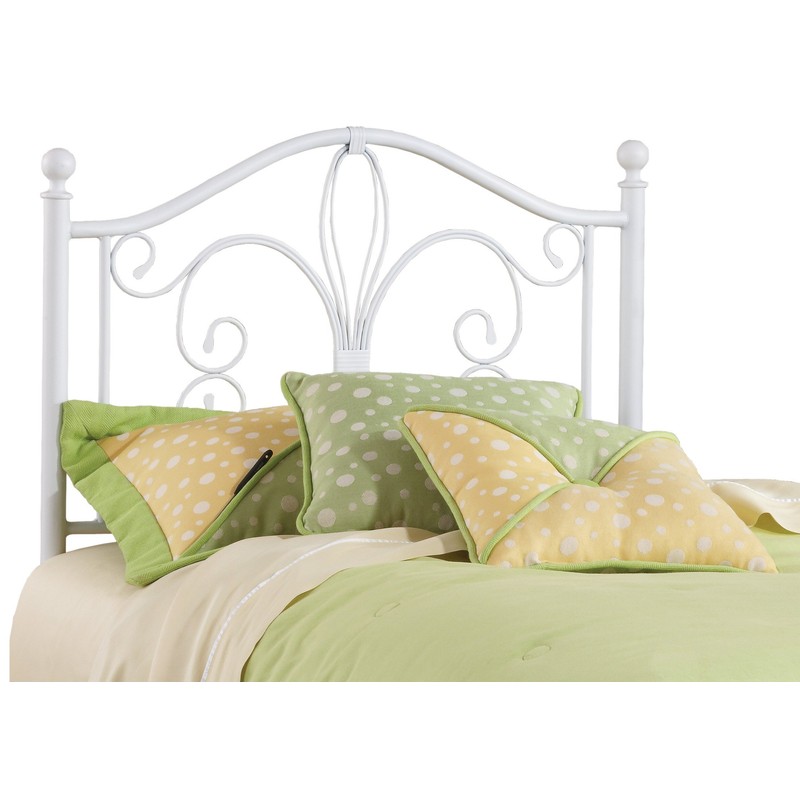 The Hillsdale Furniture Ruby Twin Headboard is whimsical and airy. The textured white finish accents the simple metal scrolls bringing elegance and style to this beautiful headboard. Includes headboard only. Frame, box spring and mattress required; not included. Assembly required.