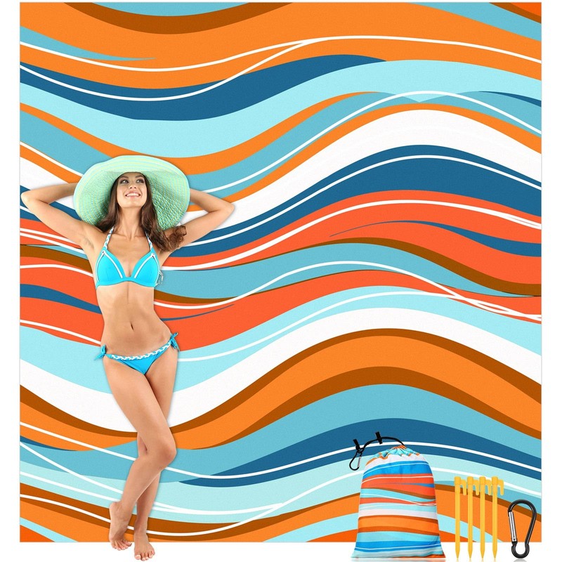 - Fashionable Design: our beach blanket sandproof features a blue and orange ripple design, which is eye-catching, stylish and beautiful, you can easily find your family and friends on the beach without worrying about getting lost